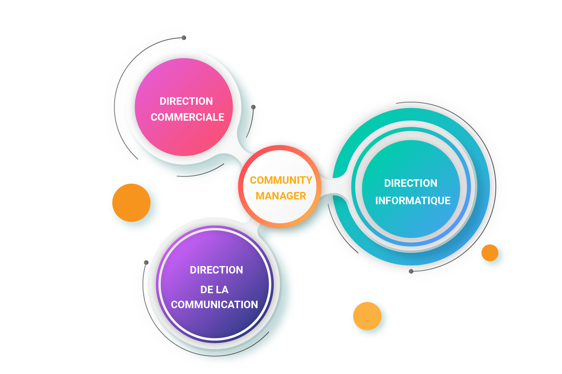 Le community manager sert d’intermédiaire entre l’entreprise et ses clients. Il joue un rôle crucial dans la mise en œuvre des décisions de marketing digital de l’entreprise, puisqu’il construit son image et permet la mise en place d’une stratégie social media efficace. Il est en contact avec le directeur de la communication en ce qui concerne la stratégie social media.